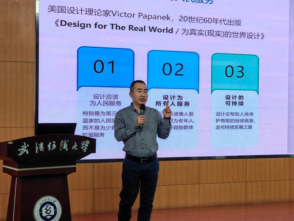 首先,郭清胜老师详细解读了办赛理念、赛制规划、评审标准等信息。他提到大赛今年特别增设了100万奖金的"创新创业"赛道,以企业真实产品需求为赛题,未来设计师首创“创新创业"赛道,以企业真实需求为赛题,解决设计最后一公里,培养大学生从产品创意、用户沟通、创意设计、生产工艺、产品合成、方案讲解、落地生产、市场销售全流程闭环能力。在互动交流环节,郭清胜老师认为设计师应当具有人文情怀做人性化设计,同时还应在设计能力、战略思维、国际视野、表达能力、商业能力以及科技能力几个方面增强自己的能力。最后,他鼓励大家积极参加学科竞赛,在实践中不断提升专业素养和综合能力。