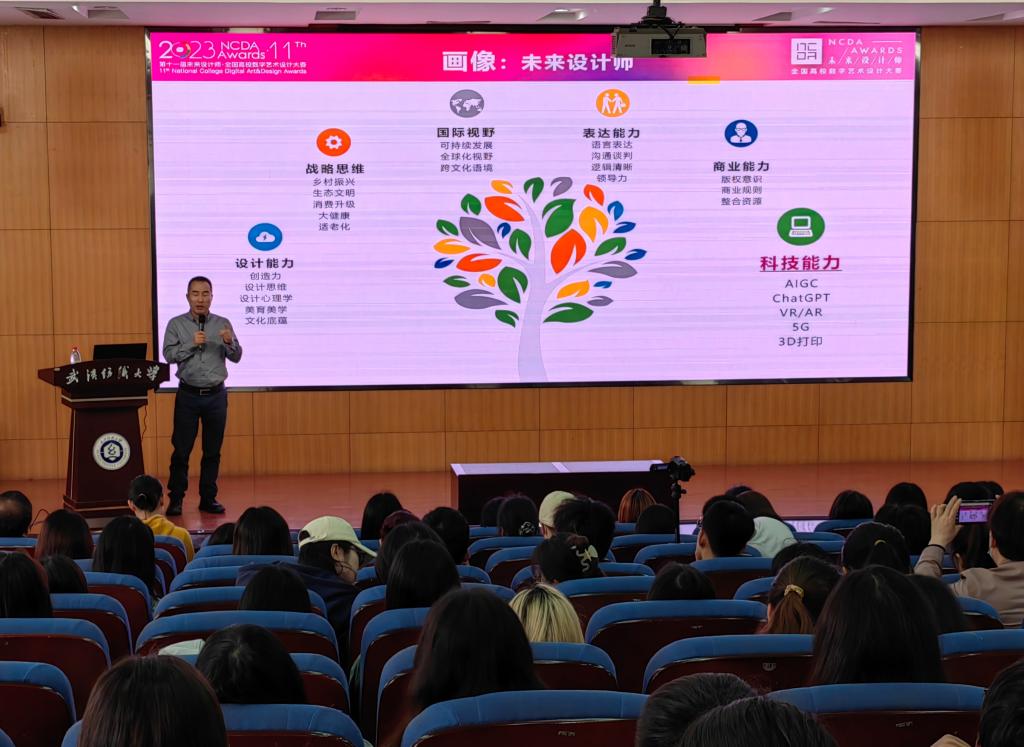 在南湖校区T201举行“未来设计师-全国高校数字艺术设计大赛(NCDA)解读”专题讲座。本次讲座特邀未来设计师-全国高校数字艺术设计大赛秘书长郭清胜进行主讲,学院副院长刘凡教授主持讲座,专任教师代表、2022级全体学生、部分研究生代表参加讲座。