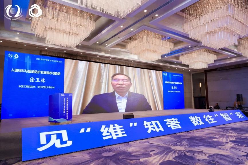中国工程院院士、武汉纺织大学校长徐卫林以视频形式作了《人因材料与智能防护技术发展现状与趋势》的主旨演讲。他指出,人因材料工程和智能防护技术在纺织领域的广泛应用,纺织产业正朝大纺织、超纺织和现代纺织的方向发展。这一趋势倚赖自动化和信息化技术的支持,预示着纺织行业在大健康和智能穿戴等领域有着广泛的发展前景。智能防护技术以人因工程为基础,可以广泛应用于健康纺织品、健康监测、疾病预警和安全领域,智能穿戴纺织品的应用也在娱乐、运动、医疗保健等领域探索中,为产业带来新机遇。