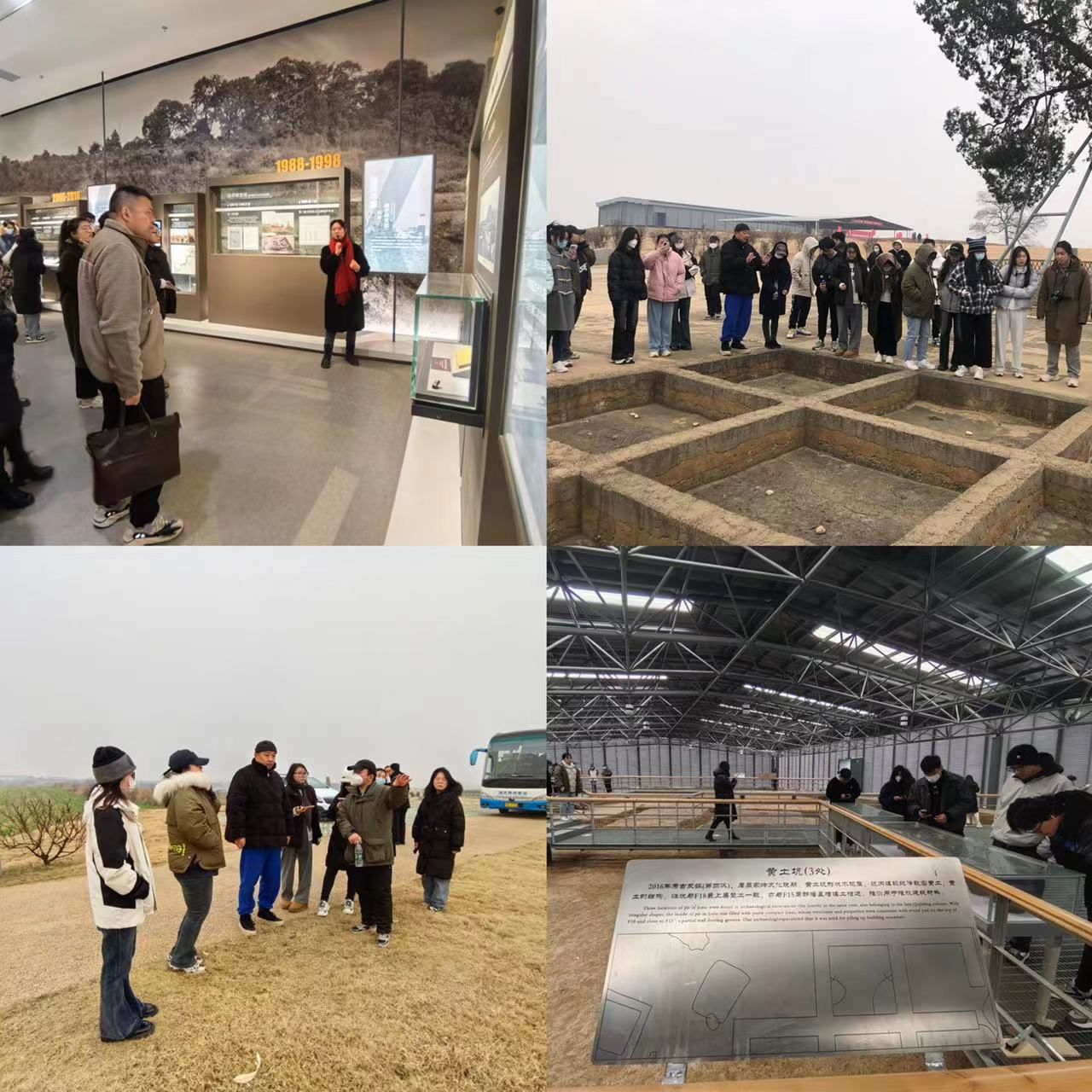 在屈家岭国家考古遗址公园,师生一行参观了遗址博物馆,实地探访了屈家岭遗址第四次考古发掘现场、建筑遗迹展示区、屈家岭村旧址、遗址祭祀区等,详细了解了屈家岭文化的渊源、屈家岭遗址考古发掘及文物保护、基地的特色亮点以及背后的文化传承故事。据悉,该公园是以重要考古遗址及其背景环境为主体,具有科研、教育、游憩等功能,在考古遗址保护和展示方面具有全国性示范意义的特定公共空间。