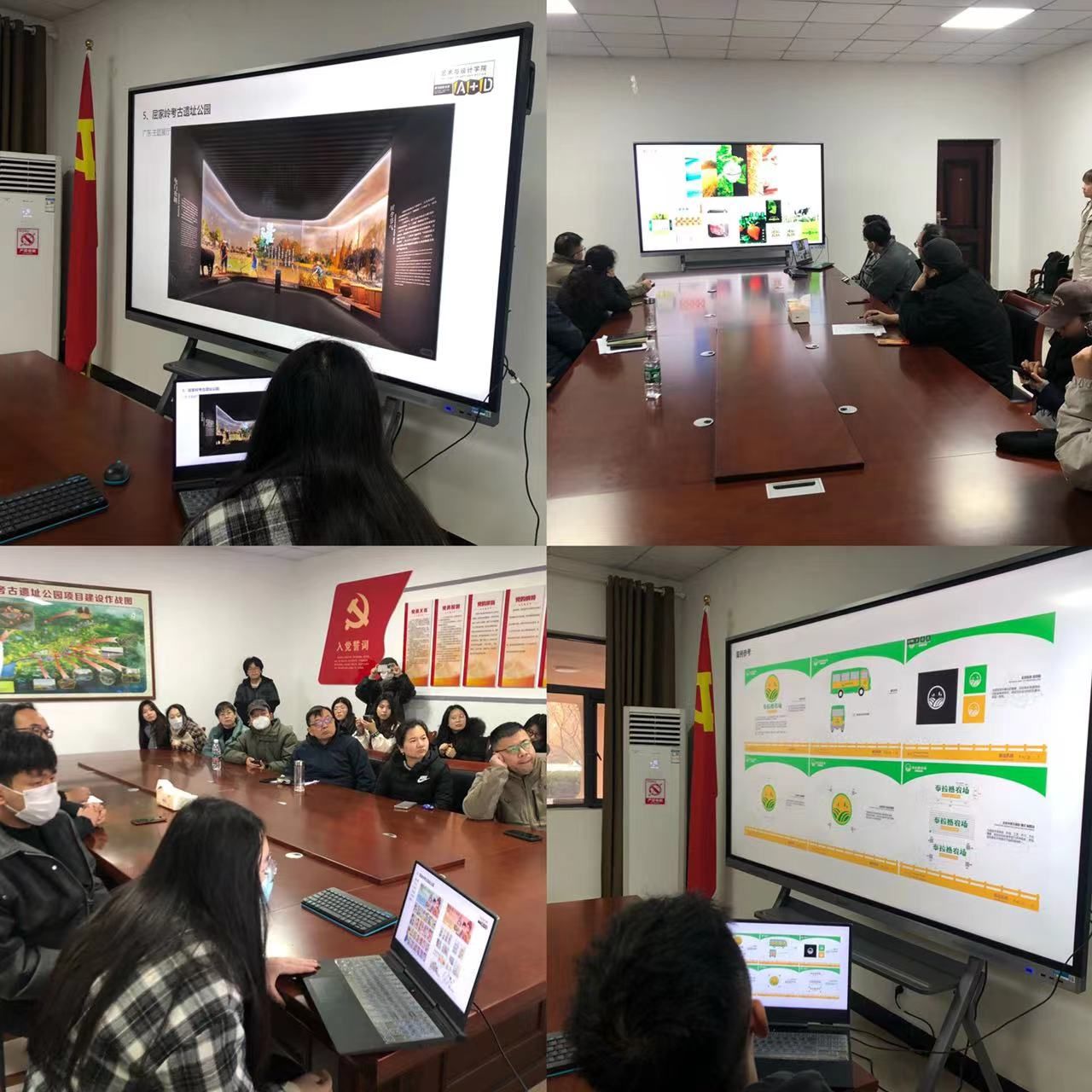 随后,在座谈会上,本科毕业班学生代表依次就前期调研情况、设计背景、设计主题等方面进行了交流汇报。相关负责人对大家前期调研成果给予充分肯定,并就开展后续工作提出具体建议。刘元文总结发言,他提出三点希望,第一,师生要高度重视本次研学活动,把所见所闻结合到前期调研材料,为做好毕业设计打好基础;第二,讲好农垦故事,屈家岭历史悠久,文化灿烂,地位特别,是农耕文化的发祥地,要继续深入研究。第三,以“发挥遗址公园引领作用 打造公共文化新空间”的发展定位为设计出发点,从环境设计、VI设计、公共艺术设计、文创设计等视角推动屈家岭文化走出去、活起来,充分发挥遗址公园引领功能作用,用创意和设计带动屈家岭经济发展,打造文化传承、绿色生态、农业创新的现代化农谷小镇。
