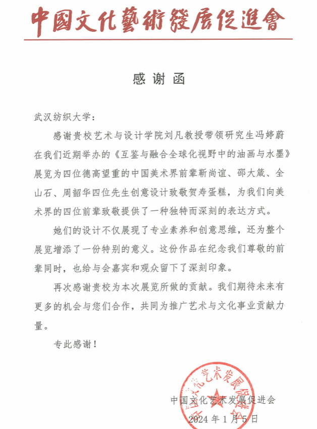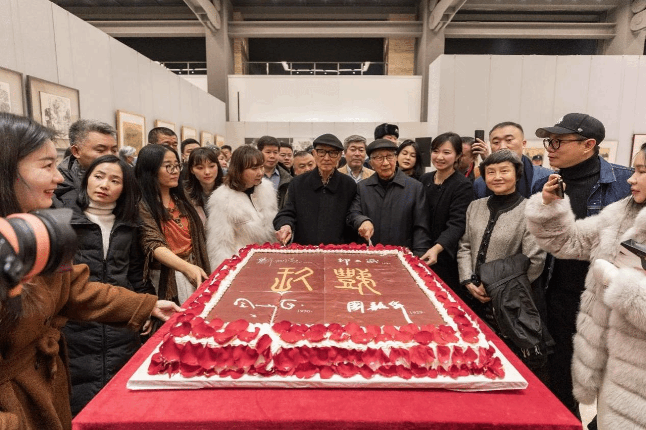 副院长刘凡教授应邀为展览上向靳尚谊等四位九秩高龄当代艺术大家致敬大蛋糕进行创意设计并参加研讨会。