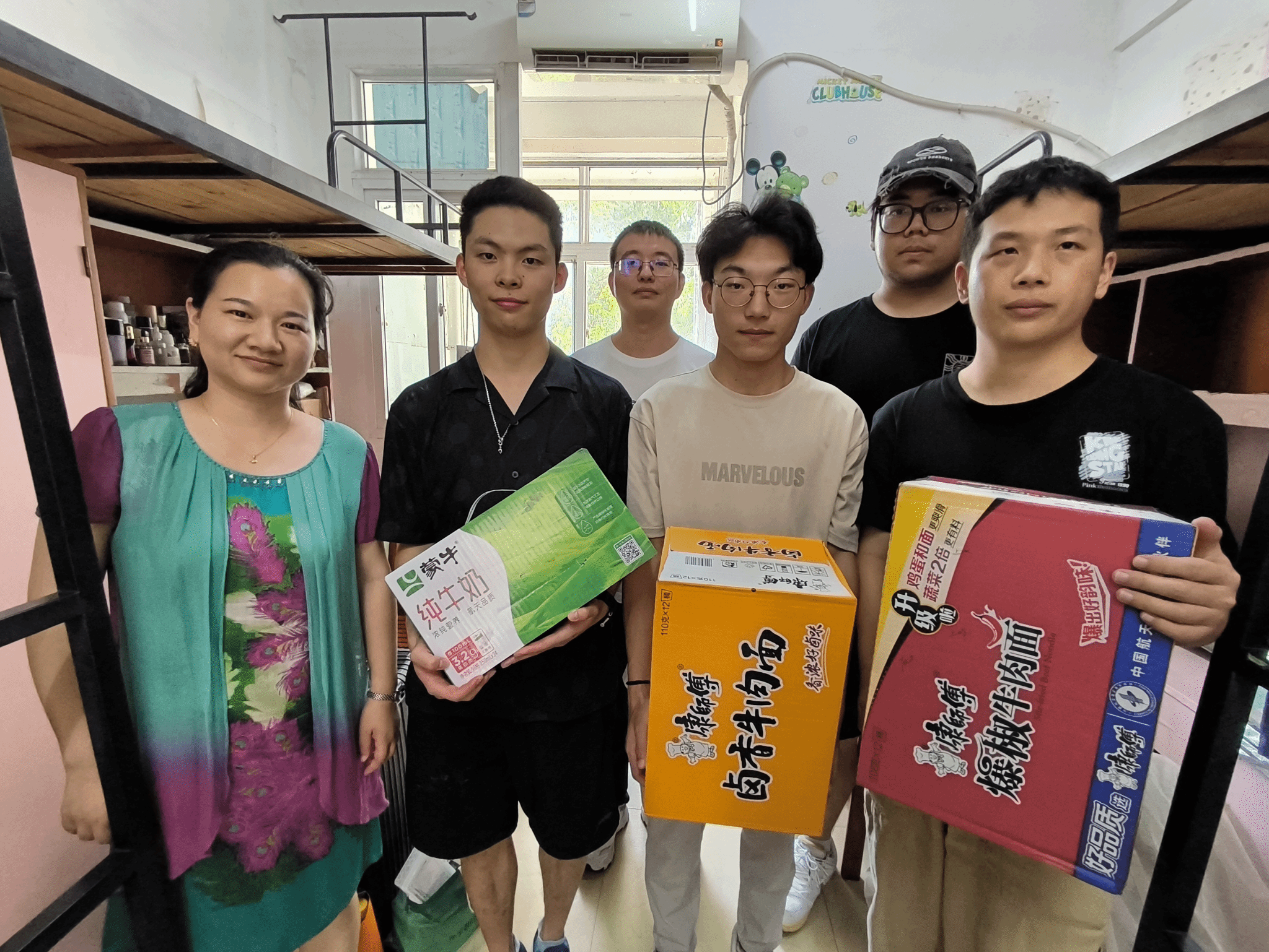 在阳光校区,吴双亲切慰问工业设计专业留校同学近期状况,表示学院会全力做好大家的管理和服务,为同学们即将到来的考研冲刺期、求职毕业期及时提供信息,为顺利毕业保驾护航。随后,吴双和张啸海为大家送上慰问品。