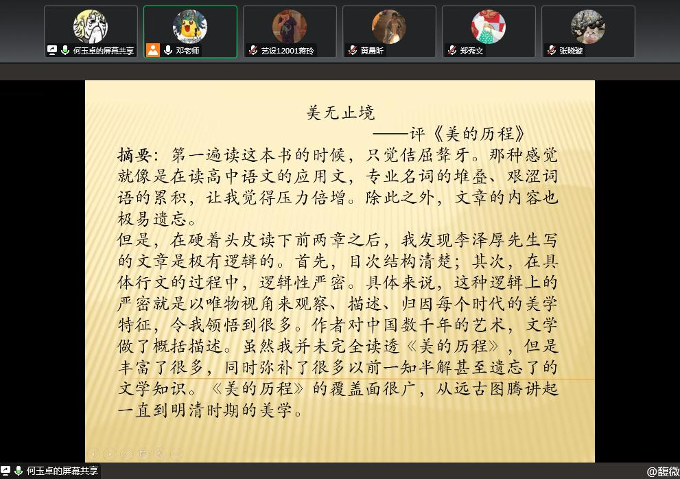 设计学12001班以线上会议的方式举行了本科学术沙龙,邓桂芳老师主持本次活动。