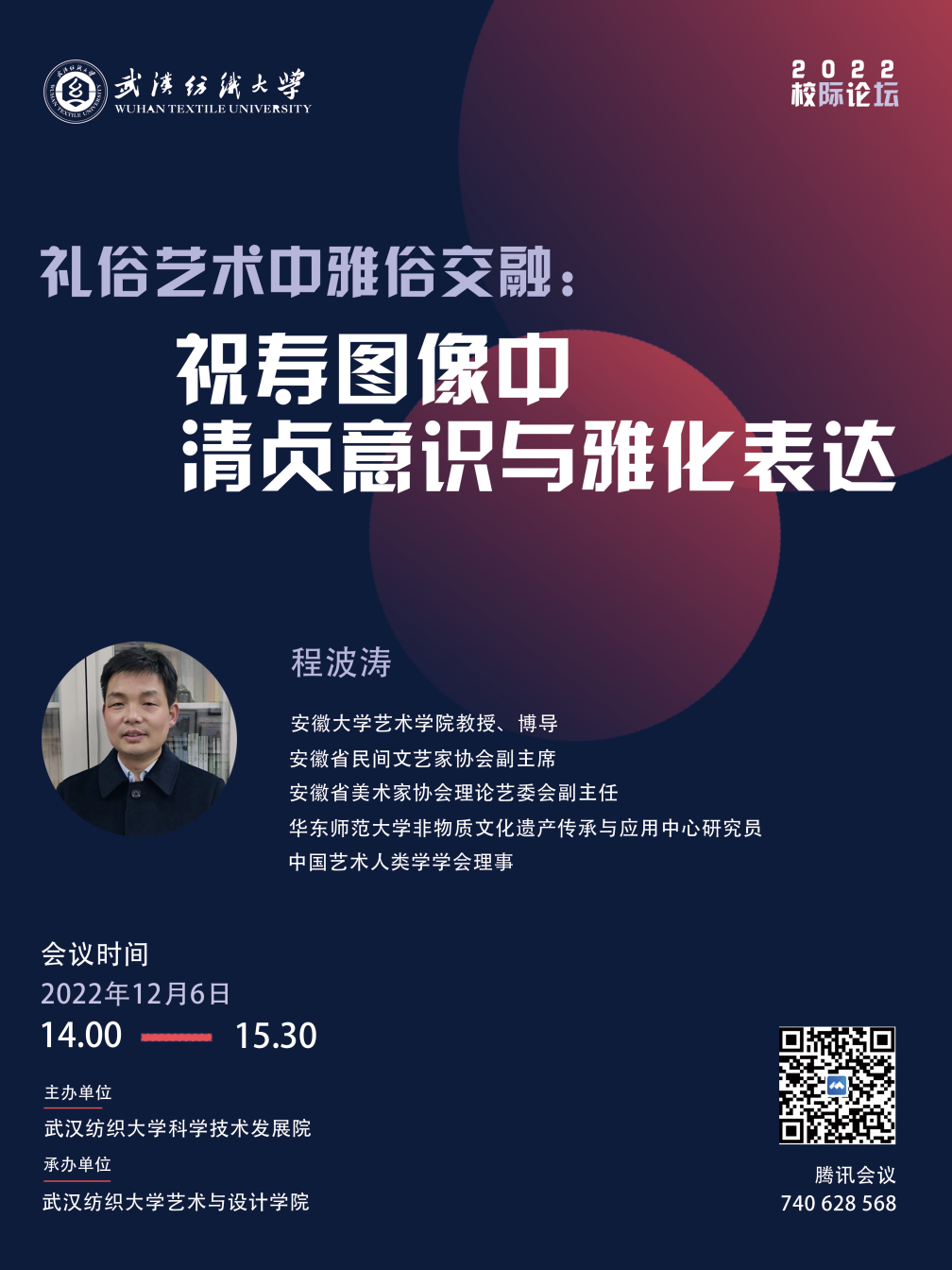 12月6日,安徽大学艺术学院教授、博士生导师、安徽省民间文艺家协会副主席程波涛应学院之邀,举办题为《礼俗艺术中的雅俗交融:祝寿图像中清贞意识与雅化表达》的学术讲座。此次讲座由色情直播平台
