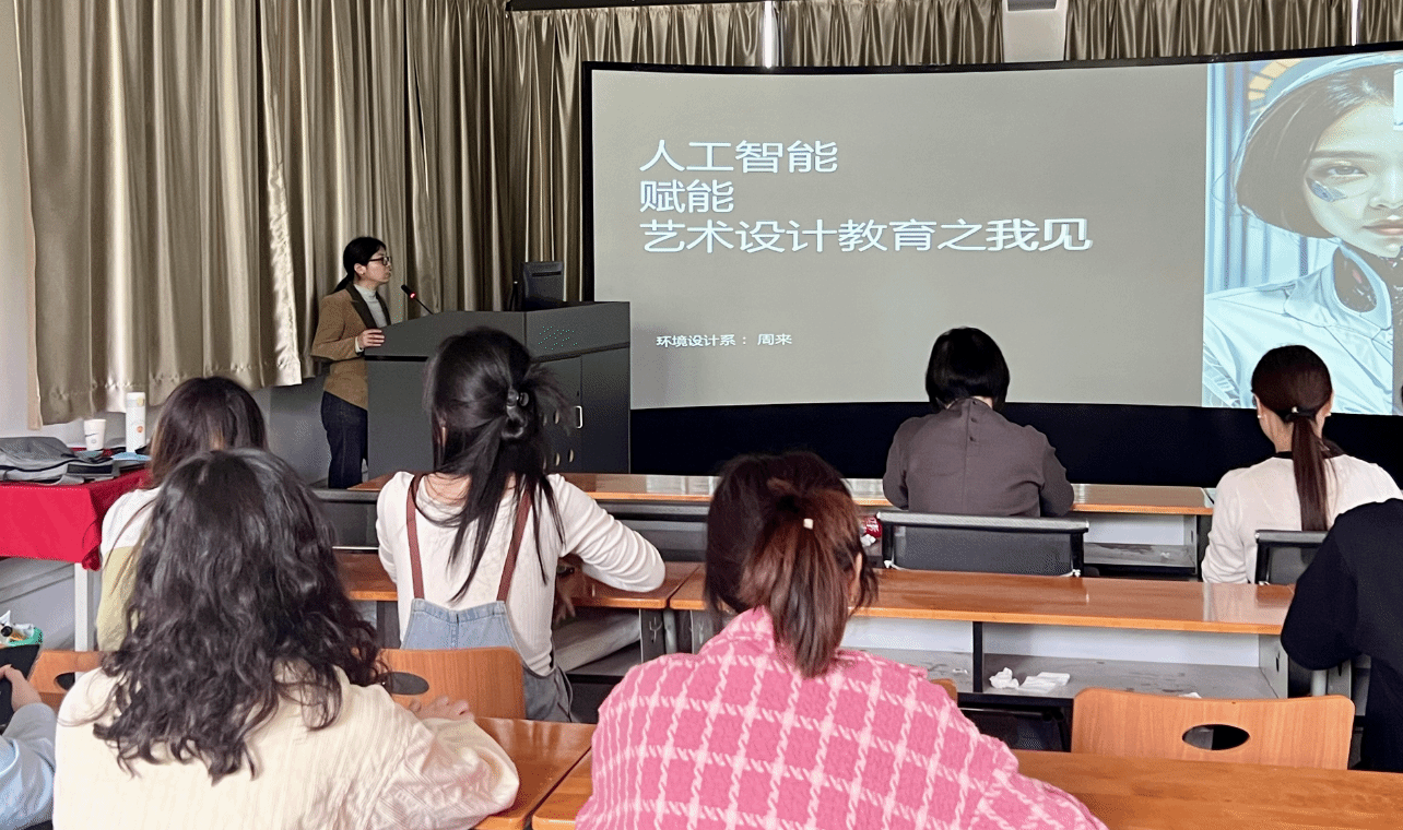 环境设计专业举办“人工智能赋能艺术设计教育”专题讲座。环境设计系专任教师周来进行主讲,环境设计专业部分学生参加讲座。