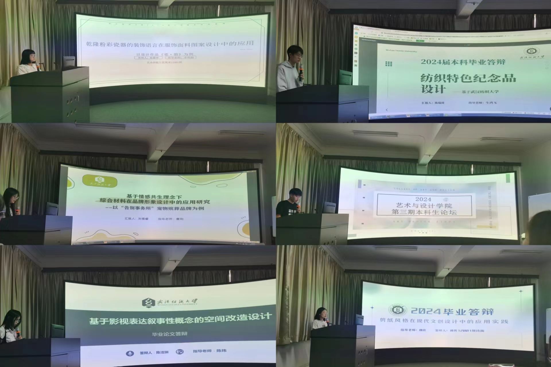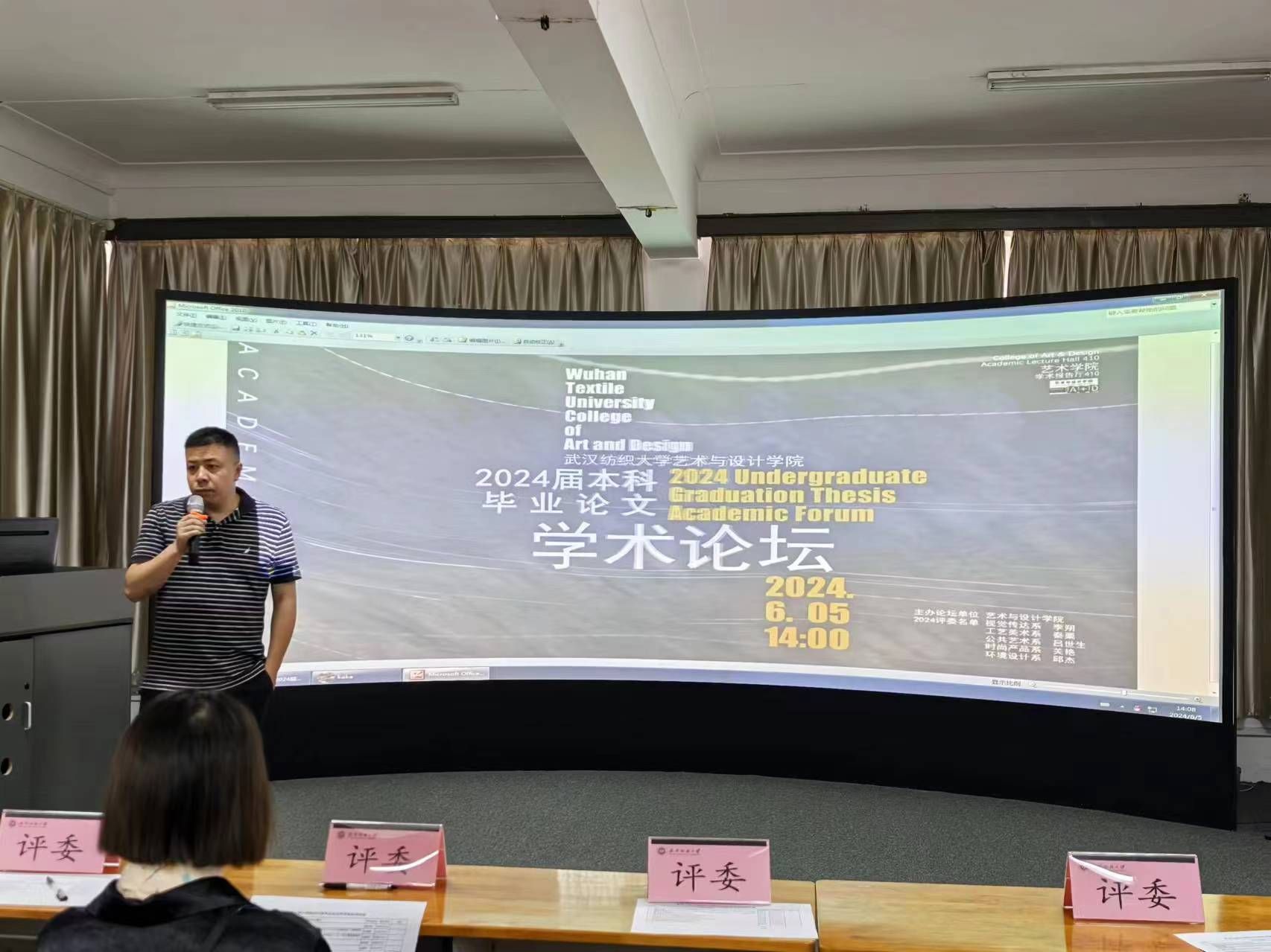 2024届本科毕业论文学术论坛在学院东北405报告厅举行,环境设计系主任邱杰、视觉传达与媒体设计系李朔、美术系吕世生、时尚产品系关艳、秦粟担任评委,本科学生代表参加论坛,副院长曹凯主持活动。