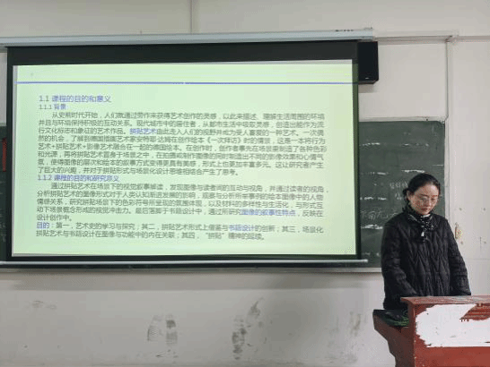 魏欣老师首先向同学们介绍了课程的目的和研究意义。她指出,“拼贴艺术"的创造意识与人类思维在起源和发展中发挥着重要的意义,形式表达直接;敢于冲破传统思维,被认为是一项极具创造力的艺术活动。随后,魏老师详细讲解了拼贴艺术的起源与发展以及场景化拼贴艺术在立体书设计中的应用,展示了如何通过不同材质、颜色和形状的拼贴元素,构建出富有层次感和叙事性的立体场景。