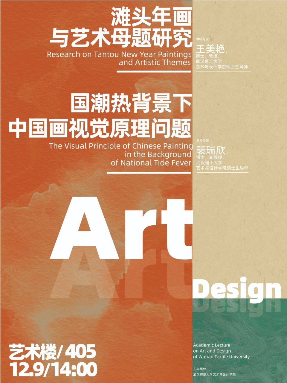 于12月9日邀请两位知名专家学者分别作题为《滩头年画与艺术母题研究》和《国潮热背景下中国画视觉原理问题》的学术讲座。