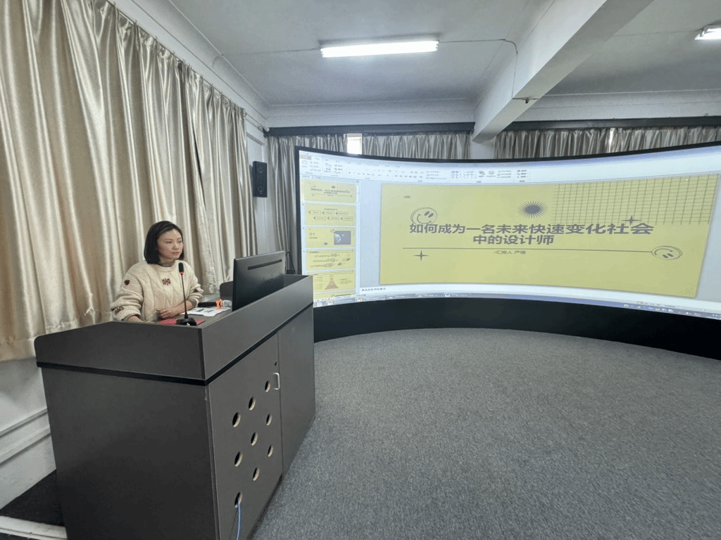 美术系于2024年12月10日成功举办“双创启航,筑梦未来”本科讲座,本次讲座由美术系严珺老师主讲,本科参赛学生共同参与。