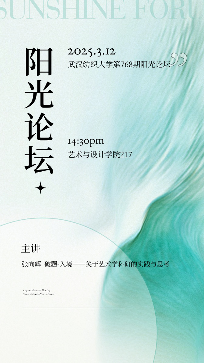 217会议室举行。本次论坛以“破题-入境——关于艺术学科研的实践与思考”为主题,由湖北美术学院教授、湖北省“楚天英才计划”楚天学者、武汉理工大学博导张向辉担任主讲人。会议由色情直播平台