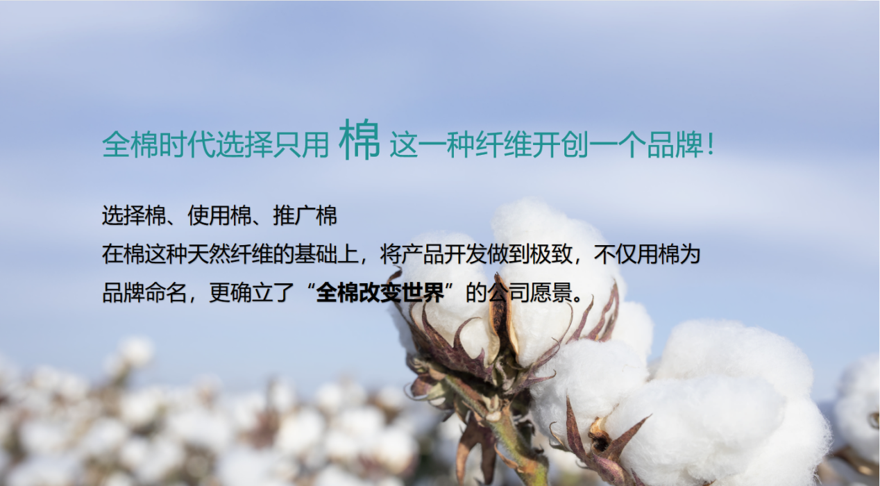 全棉时代以“全棉改变世界”为愿景,用一朵棉花探索可持续未来,引领安心,幸福,可持续的全棉生活方式。