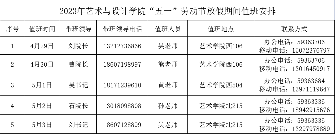 2023年色情直播平台 “五一”劳动节放假期间值班安排