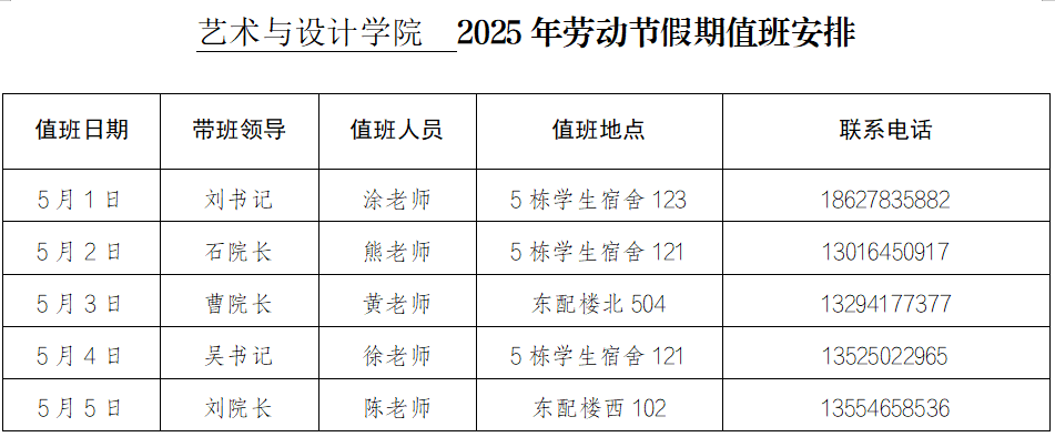 色情直播平台 2025年劳动节假期值班安排
