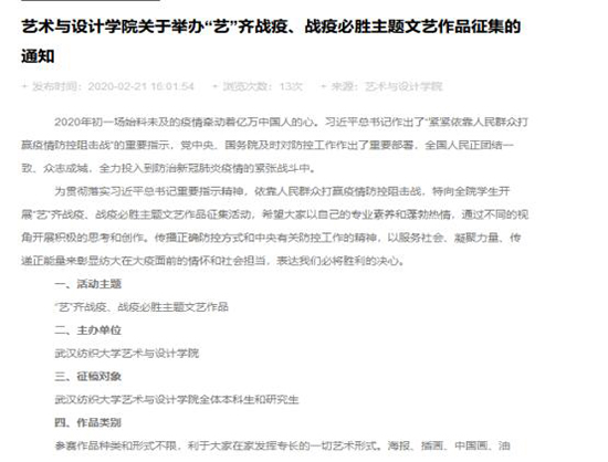 全体师生主动出击,同心战“疫”,为打赢疫情防控攻坚战贡献“艺”力。
