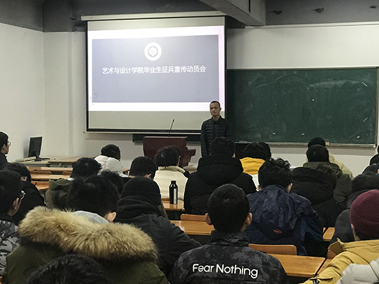在南湖校区艺术学院二楼多媒体召开了毕业生征兵宣传动员会,2016级和2017级全体男生参加了动员会,会议由2016级辅导员张舟主持。