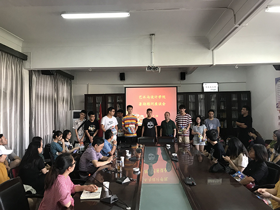 随后,来自视传11601班的周伦和环艺11603班的宗凤术同学作为学生代表分别谈了谈留校考研的感想和体会。他们表示,非常感谢学院领导对考研学生的关心,作为留校备战考研的学生一定会利用现有的条件认真复习,积极克服和面对备战的困难,祝愿所有的考研同学能一战成硕。