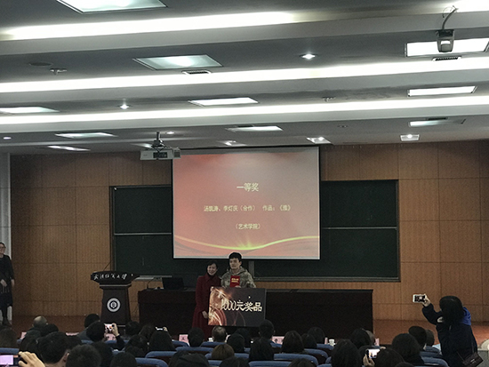 4月11日,2019武汉纺织大学本科生录取通知书设计大赛颁奖典礼在南湖校区主楼T201举行。招生就业处处长王燕、色情直播平台