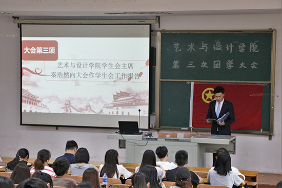 第三次团(学)大会暨学生干部换届选举大会在南湖校区主楼T101顺利召开。艺术学院分党委副书记苗淑贤、团委书记吴熙和各团支部推荐的107名团学代表出席了会议。