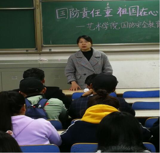为增强国防教育,激发青年学生的爱国主义热情,树立民族自豪感,自觉履行国防义务。11月22日,艺术学院开展了2018级学生国防安全教育讲座,讲座由2018级辅导员漆晚霞老师主讲,2018级全体学生参加了讲座。
