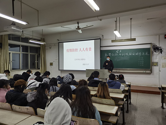 2021级组织各班在综合楼208、209教室开展疫情防控主题班会。