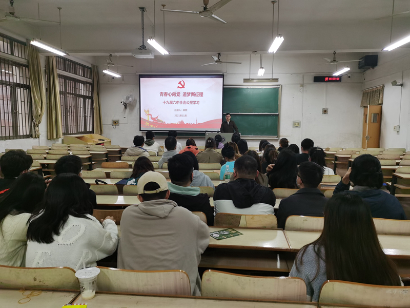 在综合楼110教室组织开展“学习党的十九届六中全会精神”主题讲座。本次讲座由2019级学生辅导员吴熙老师主讲,2019级本科生参与了此次讲座。