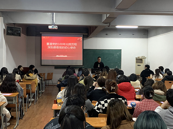 在二楼多媒体教室组织了全体研究生进行了党史教育学习——重温党的100年光辉历程主题班会,由学院研究生辅导员张舟老师主持。
