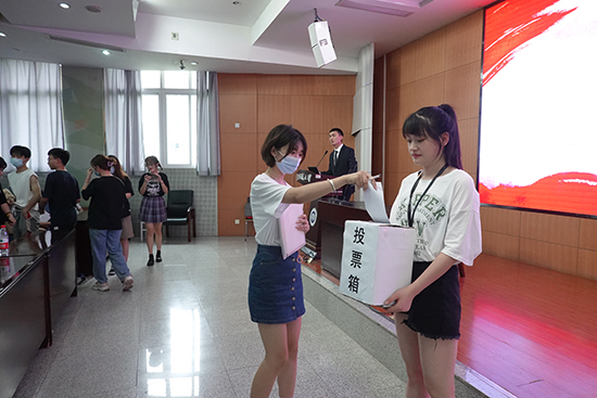紧接着,艺术学院学生会执行主席杜正心代表学生会全体成员作工作报告,大会通过了大会监票人、计票人名单。经过候选人演讲,现场投票计票,产生了武汉纺织大学第五届学生委员会候选人预备人选:张明婧、李嘉辉,艺术学院新一届学生会主席团成员:张明婧、郭嘉慧、田子怡。与会代表还听取并审议了关于学生会改革的具体通知及要求(草案),班团一体化、第二课堂工作安排执行草案,通过了《艺术学院学生会章程》(修正案)。