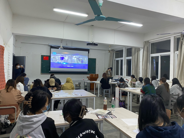 本次活动由各班团支书组织,全体班团支部成员起立奏唱国歌,全体成员重温入团誓词,重温当年的铮铮铁骨,会议学习,中国空间站,永远值得期待! 梦天实验舱成功完成转位,中国空间站“T”字基本构型在轨组装完成。经过两年时间,中国空间站建造终于进入最后的收官阶段。本次会议在视频中利用一串串数字,让各位同学们感受中国航天的圆梦加速度。九天揽月,梦圆苍穹。各班同学认真学习宣传贯彻党的二十大精神,紧密地团结在以习近平同志为核心的党中央周围,自觉用习近平新时代中国特色社会主义思想武装全团、教育青年,不断增强“四个意识”、坚定“四个自信”、做到“两个维护”,以忠诚践行初心,以实干担当使命,切实肩负起做好新时代党的青年工作的光荣职责,引领广大团员青年在以中国式现代化全面推进中华民族伟大复兴的新征程上,与全国各族人民一道团结奋斗,让青春在全面建设社会主义现代化国家的火热实践中绽放绚丽之花。