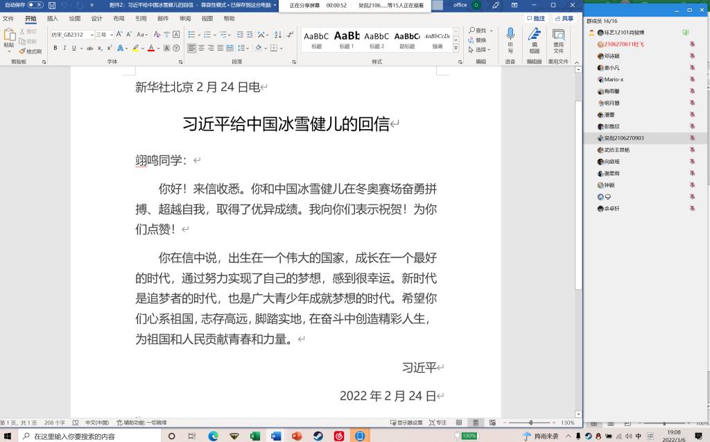 各团支部3月20日在线上开展了“学习冬奥精神,激扬青春之歌”主题团日活动。