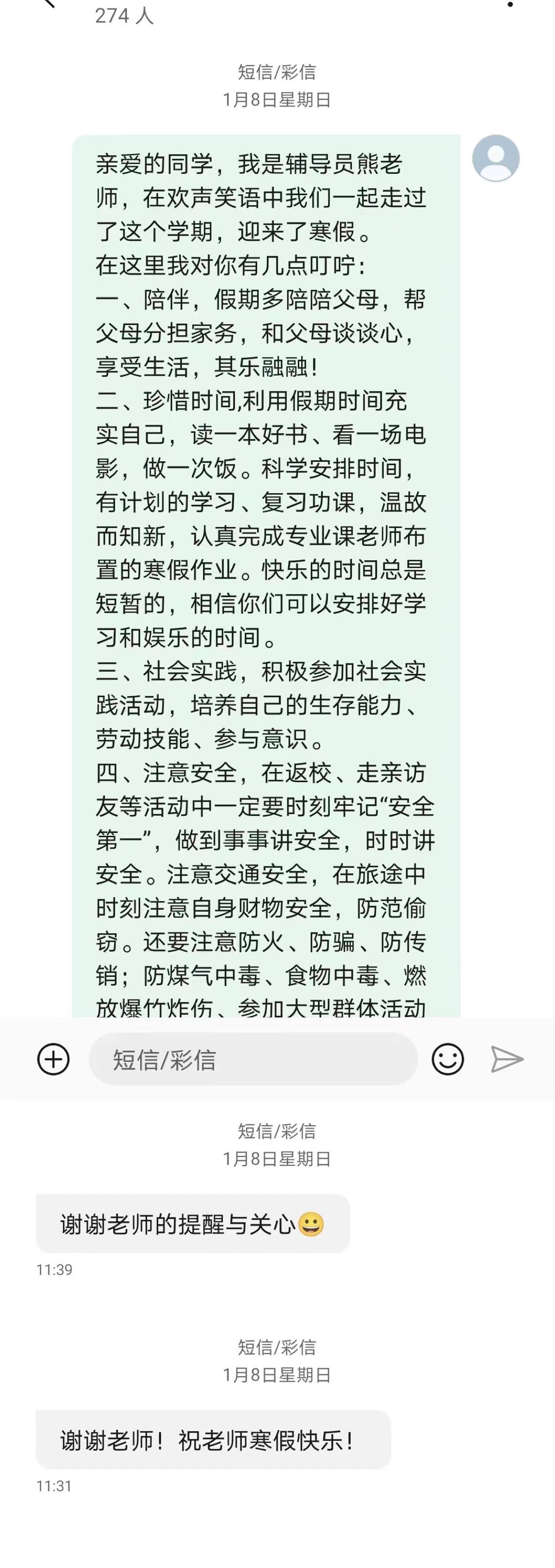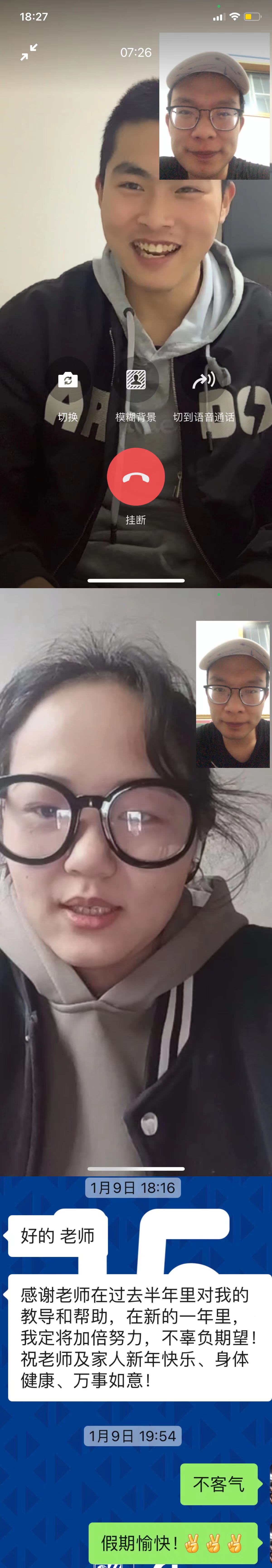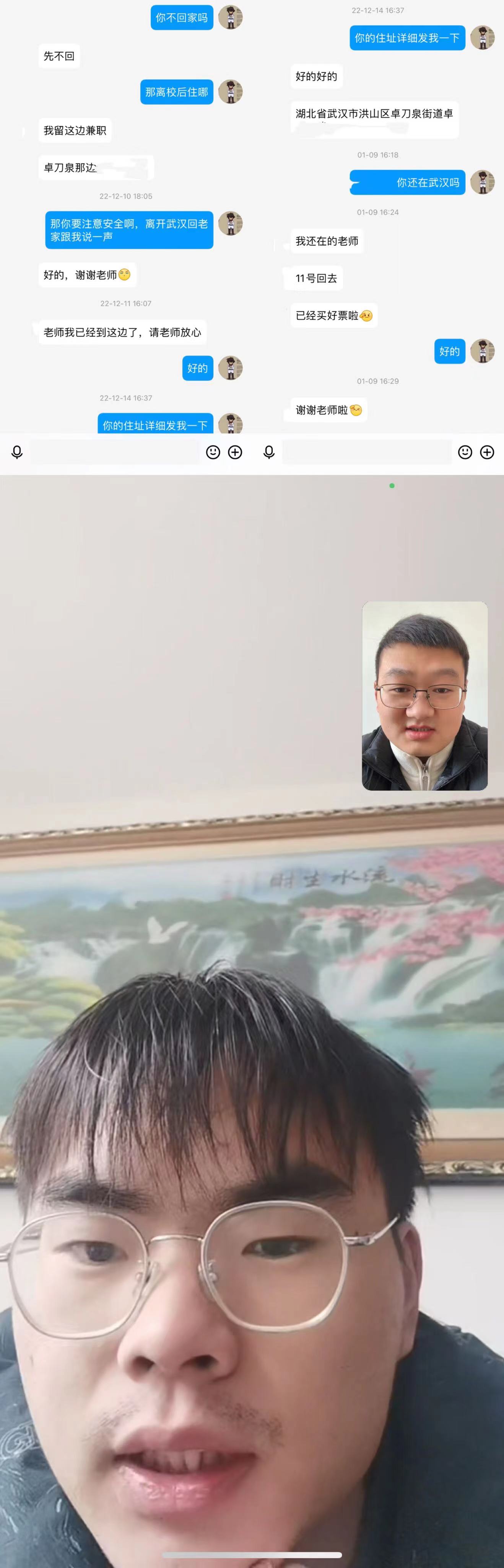 辅导员详细了解学生返乡后身体健康、居家学习、假期安排等情况,并送上新春年祝福。