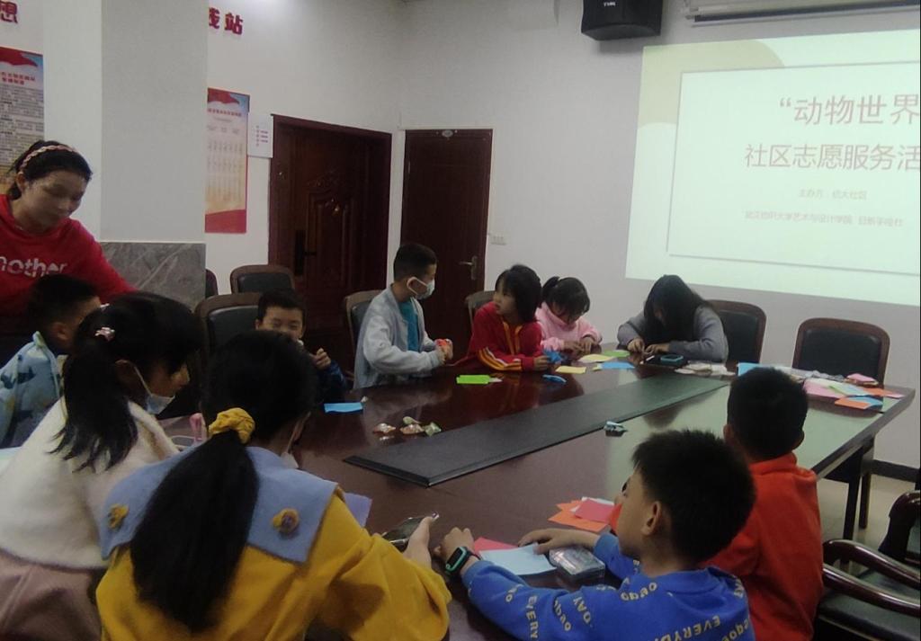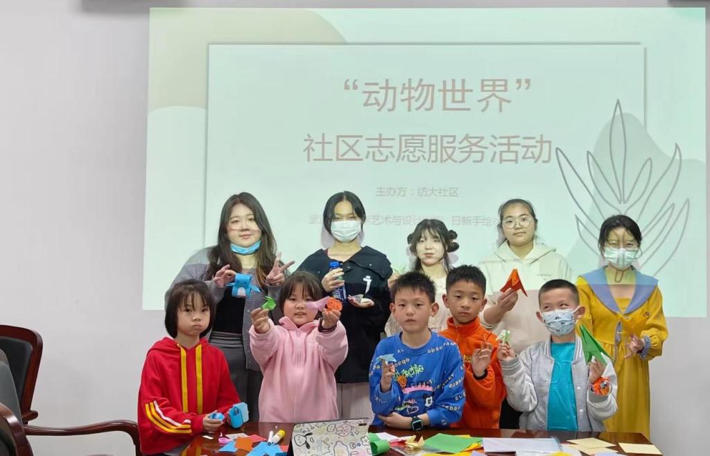 日新手绘社来到纺大社区开展“手上的动物世界”主题社会公益实践活动。本次活动旨在手绘社成员通过教社区小朋友学习折纸,充分激发他们的想象力和创造力,带来愉悦、创造快乐的同时,也让他们意识到了保护动物的重要性。