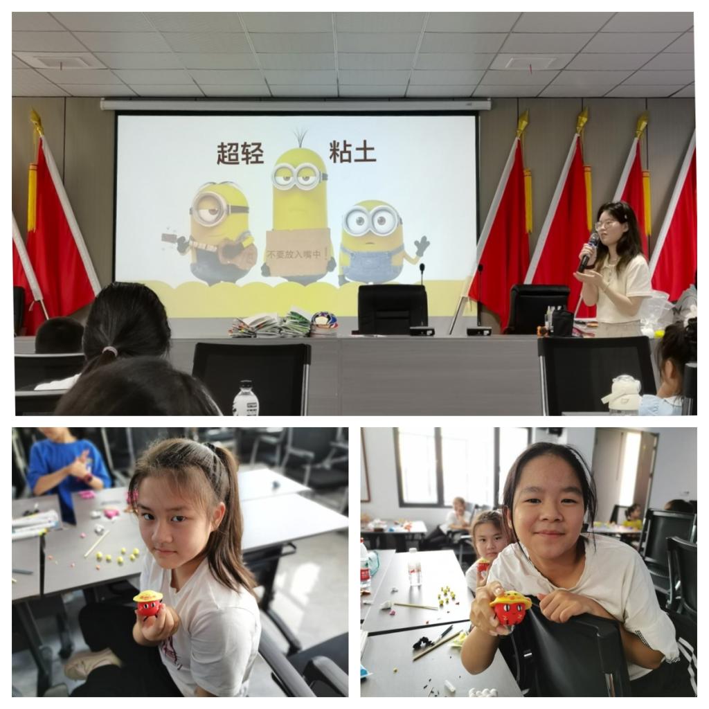 志愿者郭冰琪为小朋友们准备了多彩的粘土泥,让小朋友们按照自己的创意进行制作。小朋友们制作的粘土作品形态各异,软软的粘土在小朋友们的捏造下,一个个生动可爱的小动物、魔法棒、糕点等呈现出来。小朋友们在制作的过程中,尽情地发挥想象力,体验成果的快乐。