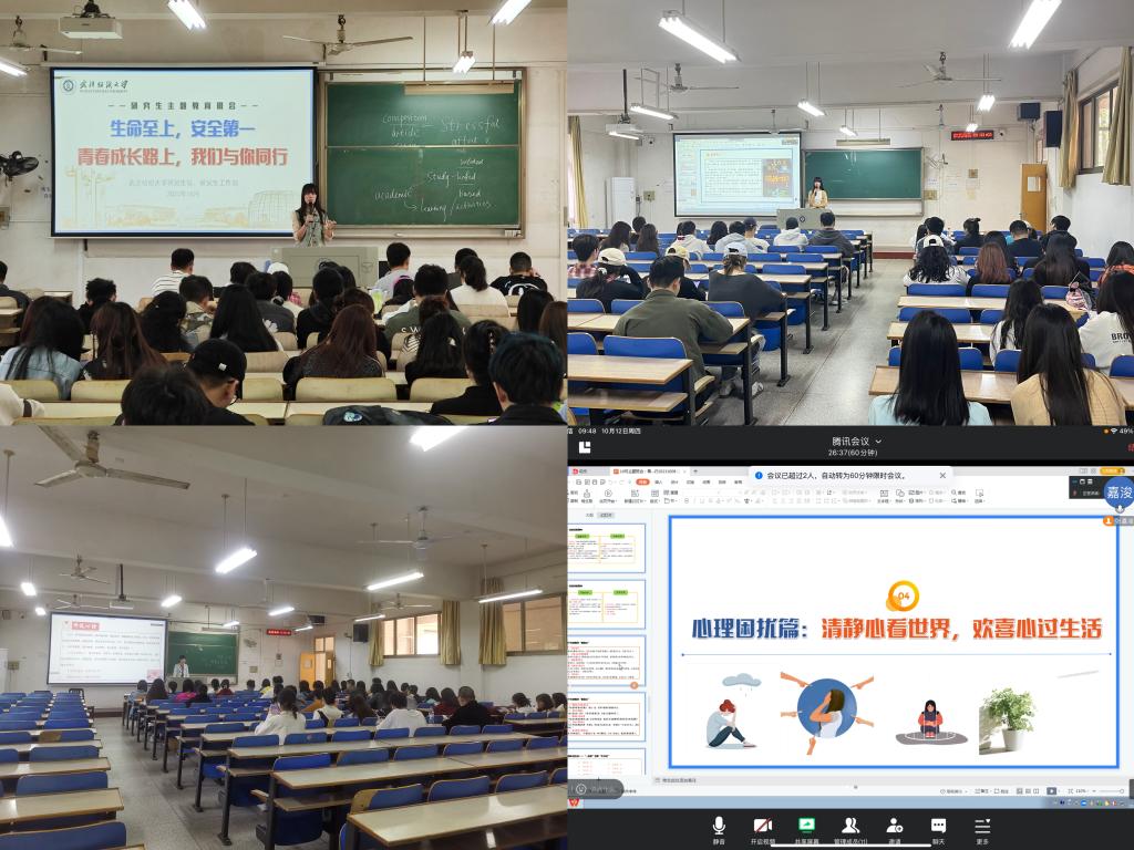 面向全体研究生开展了“生命至上,安全第一”的主题班会。为确保教育效果,会议以50人一组,结合线上线下的形式分三天开展。会议由研究生辅导员陈畅主讲。