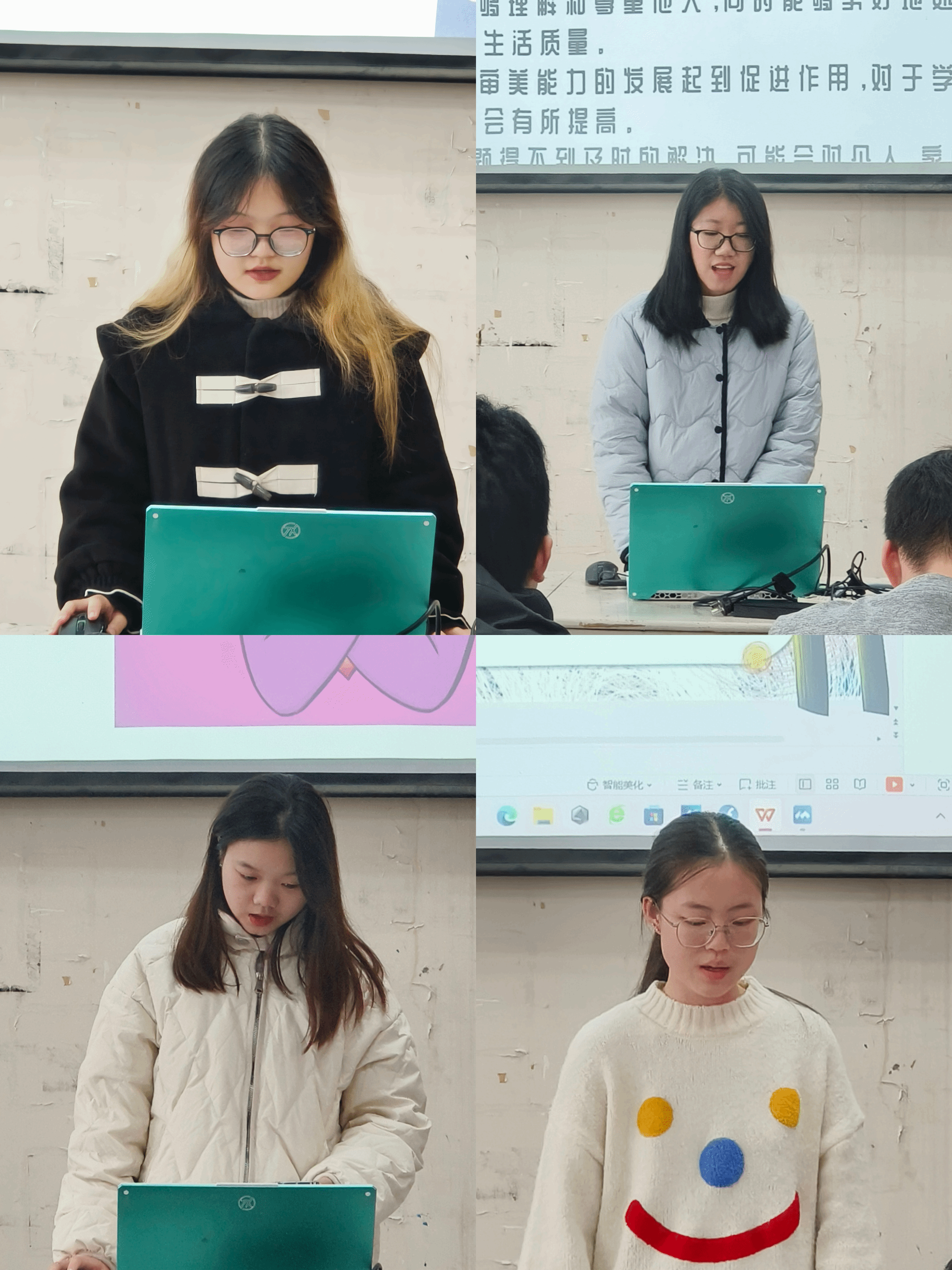 在本次心理委员风采大赛中,产品设计12201班屈慧琳、视传12203班饶亚男荣获一等奖,环艺12203班谭芷倩、工艺12201班吴薇、公共12202班朱雨晨荣获二等奖,设计学12303班王海璐、工设12301班梅智源、工艺12202班张瑞希、公共12201班彭心烨荣获三等奖。