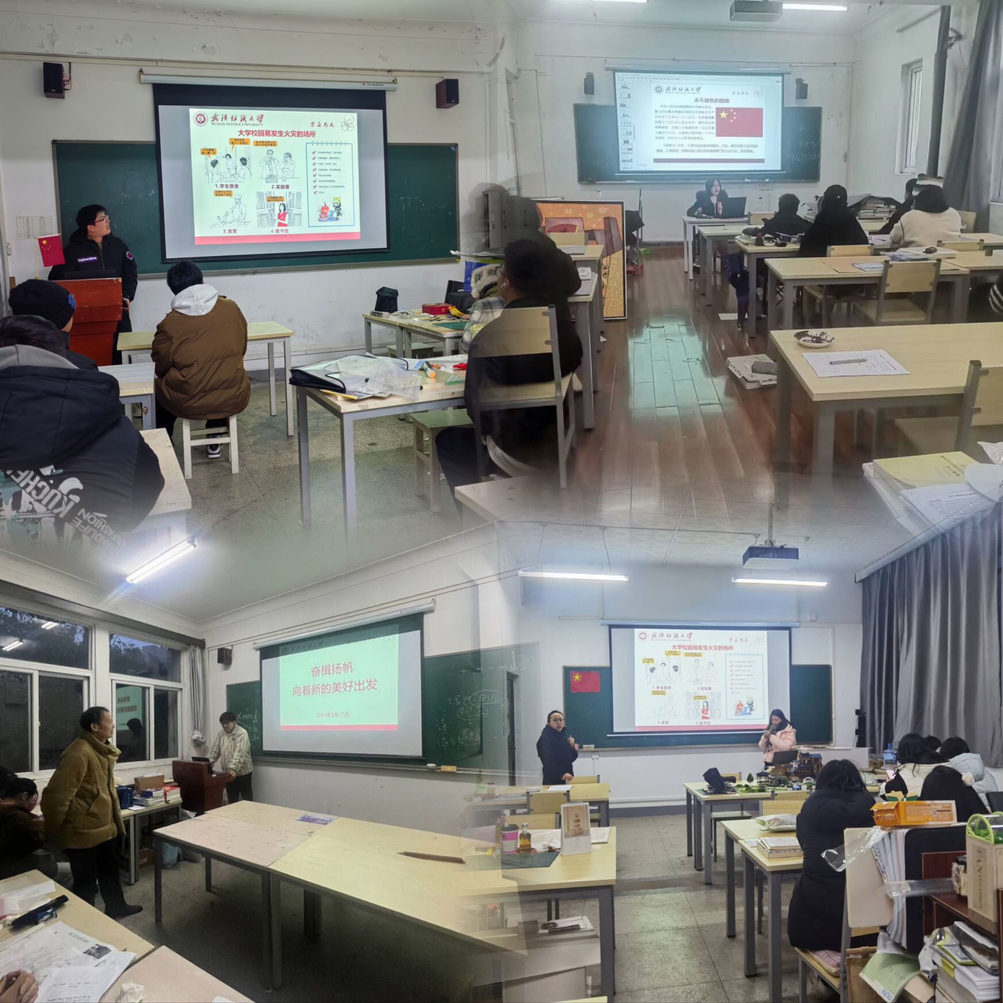 班会伊始,班主任代表学院为每位同学送上开学祝福。随后,带同学们一起重温习近平总书记发表的新年贺词,回顾2023年省之大计、校之要情、学院2023年十件大事。展望2024年,提前了解即将到来的全国两会、人民海军成立75周年、中国共产党建党103周年、巴黎奥运会开幕、中华人民共和国成立75周年等。同时,各班主任还围绕网络安全、防诈骗、校园贷、用电安全、食品安全、寝室安全等展开了安全主题教育,帮助同学们树立安全防范意识、提高警惕、增强防骗能力。最后,班主任们鼓励同学们尽快投入学习状态,青春逐梦,昂扬龙腾新气象。