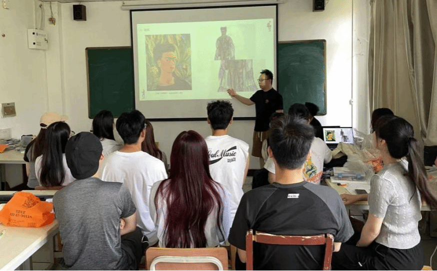 最后,黄龙飞老师深度剖析了塞尚的经典作品《大浴女》。他认为画面中的女性角色并非仅仅是画面的静态构成元素,更是画家的情感投射,他告诉同学们不仅要注重技巧的学习,更要挖掘作品中的深层含义,这样才能把专业知识理解的更加透彻。