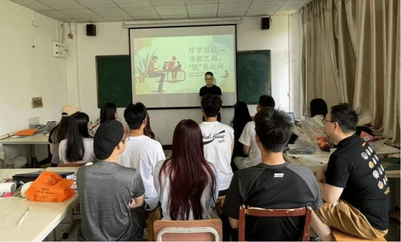 在东配楼507教室举办了主题“寻游艺海,‘悦’见山河”的作品赏析会。此次活动由研究生导师刘勇、黄龙飞、张舟主讲,研究生辅导员陈畅主持,学生代表参加本次活动。
