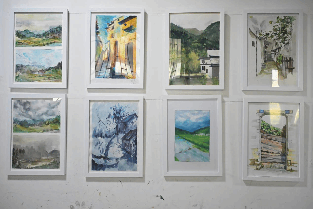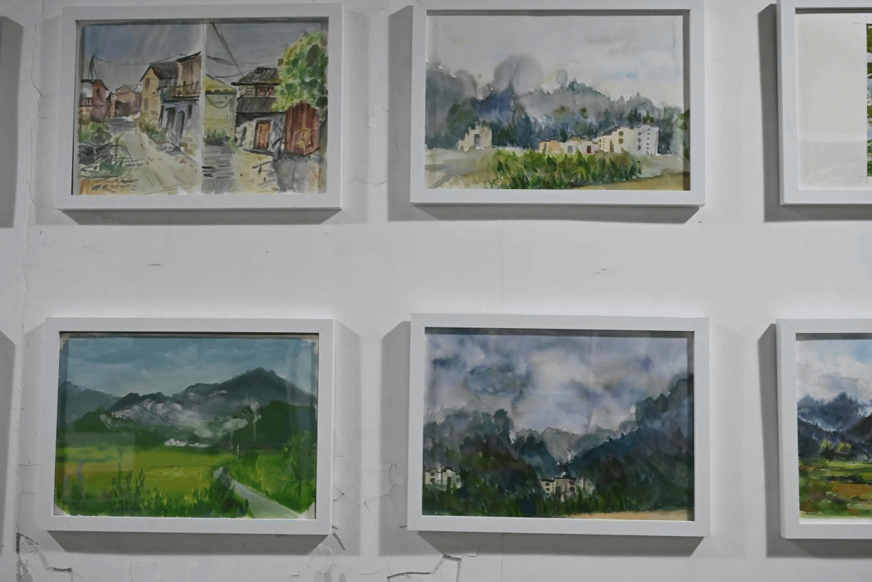 布置“婺裡青华”写生作品展,各式各样的风景画、艺术品在色情直播平台