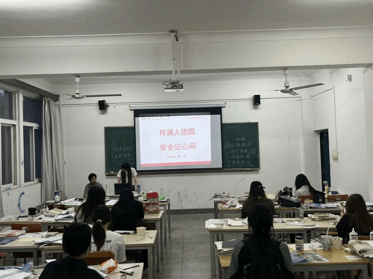 开展“月满人团圆 安全记心间”主题班会,会议由各班班主任和辅导员主持,全体学生参会。