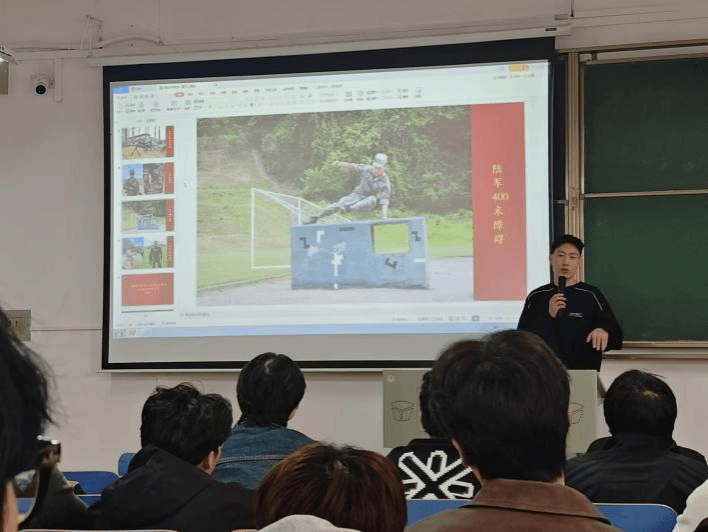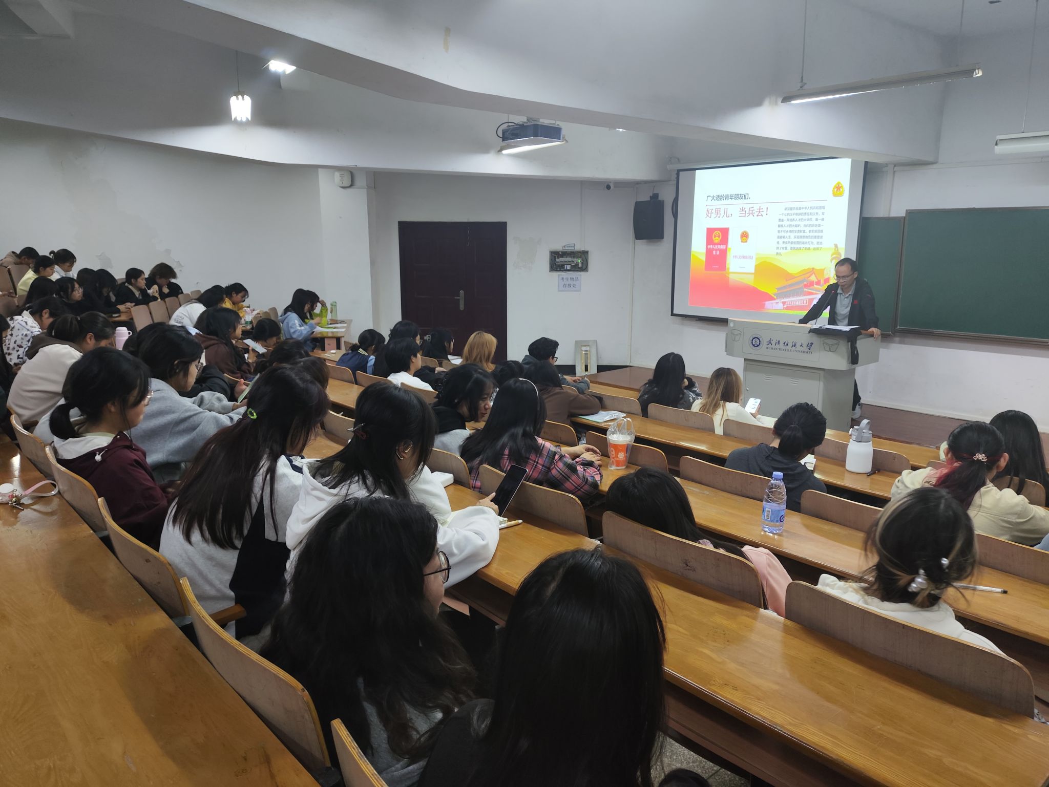 11月7日下午,举行退伍学生士兵朋辈交流活动。11月8日,举行主题为“征兵入伍动员”全体男生宣讲会。