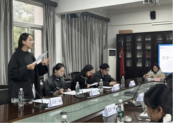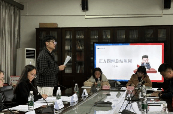 学生对艺术创作的思辨性思维,提高表达与沟通技巧,增强对思政教育的认同感,11月25日上午,在艺设楼217会议室成功举办了主题为“思辨青春,筑梦未来”的思政辩论赛活动。研究生辅导员陈畅、本科生辅导员熊潇潇出席本次活动,研一学生刘赛君主持,研一、研二两支代表队参赛。