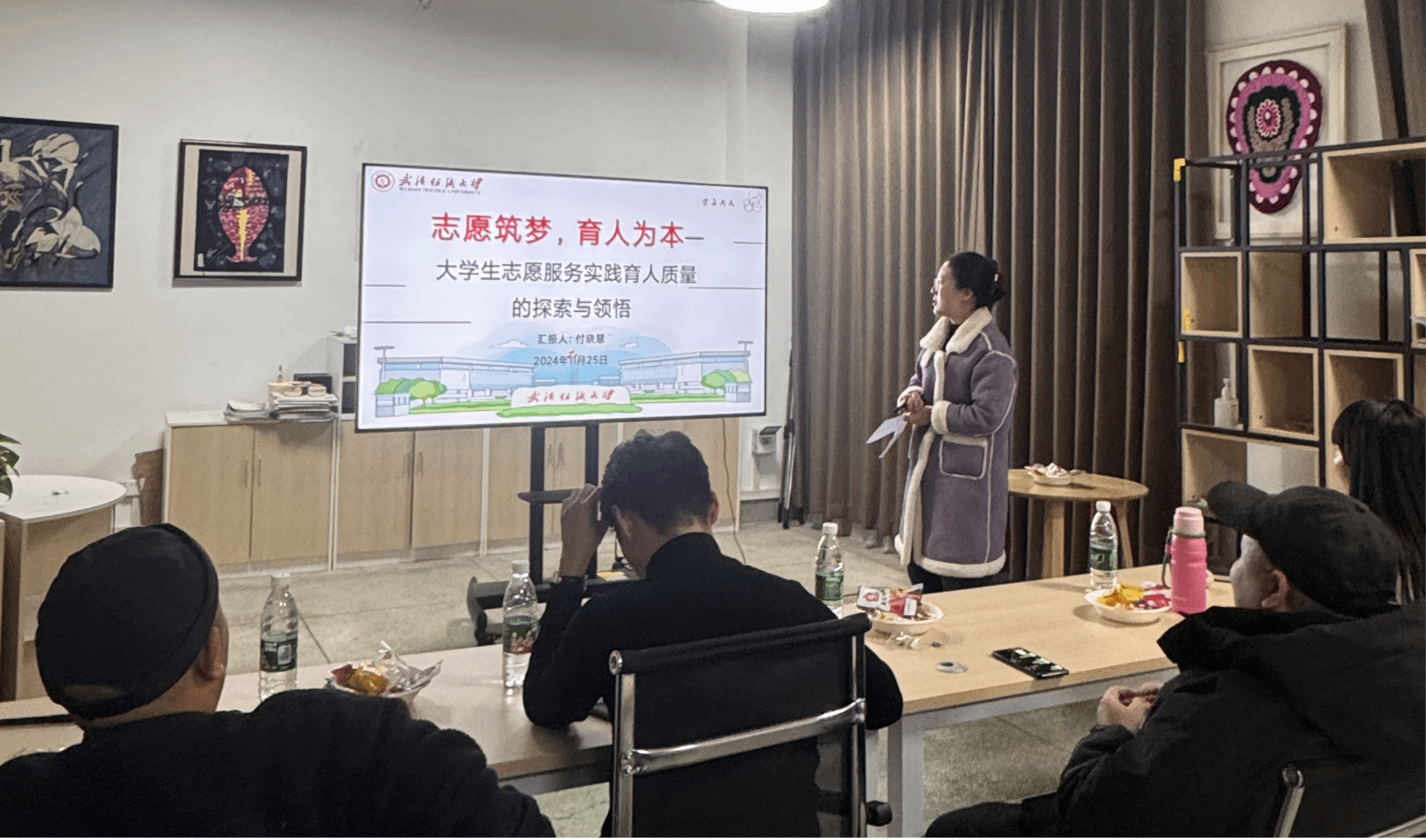 陈畅老师以《力行而后知之真一让学生在社会实践中深度求知》为题,表明学生的志愿服务活动之后依旧可以通过梳理、展示、交流等让志愿活动更加有价值。新进辅导员付晓慧老师以《志愿筑梦,育人为本--大学生志愿服务实践育人质量的探索与领悟》为题,聚焦到一站式的建设中,表明志愿服务活动是共同协助的过程,可以通过志愿服务构建更加紧密的师生关系。