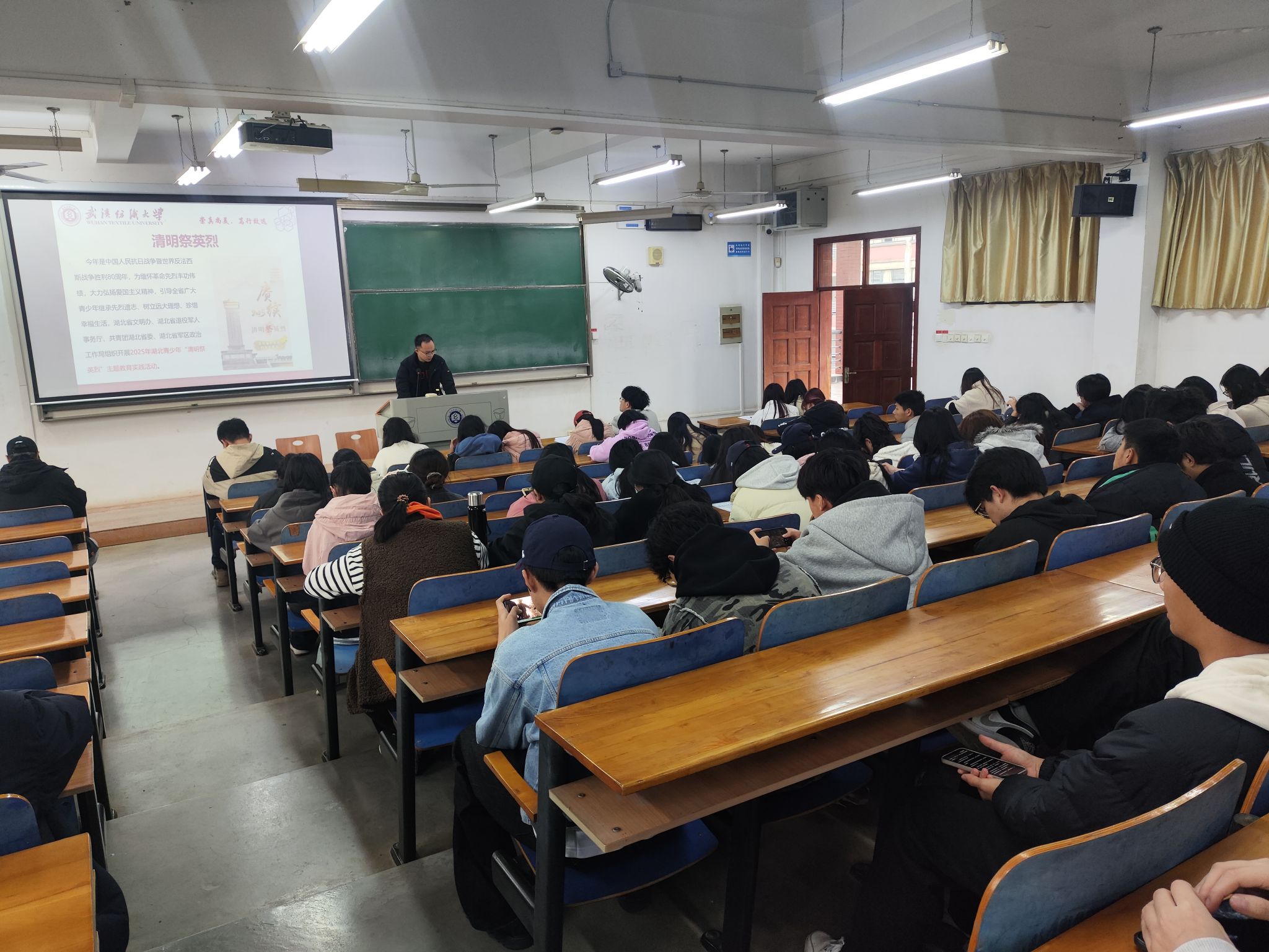 班会上,班主任带领同学们了解了清明节风俗,学习英烈事迹,勉励大家要弘扬伟大爱国主义精神,树立远大目标,珍惜青春年华,不忘来时路,坚守初心梦想,踏实学习追求进步。
