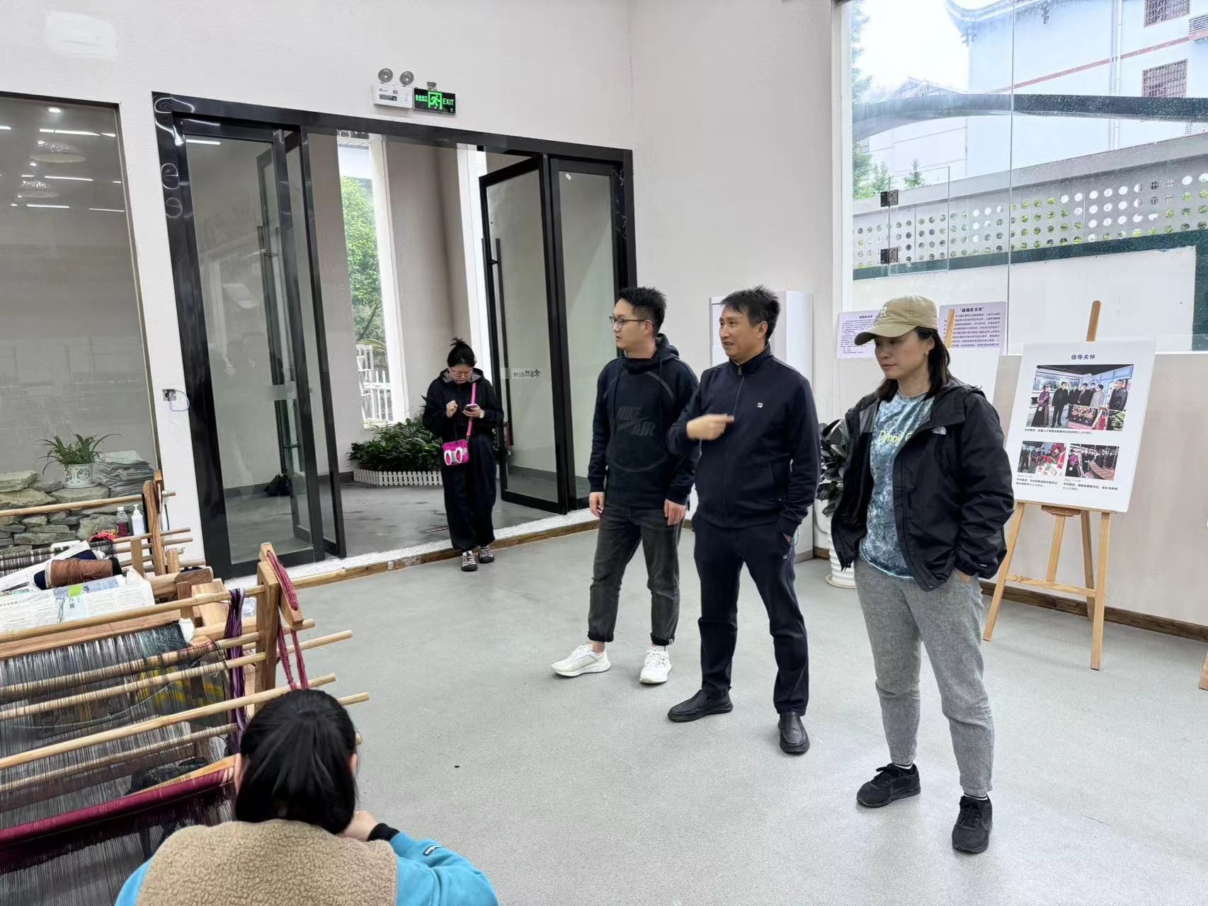 美术系主任严珺、时尚产品系主任刘勇一行到张家界乖幺妹土家织锦开发有限公司访企拓岗。