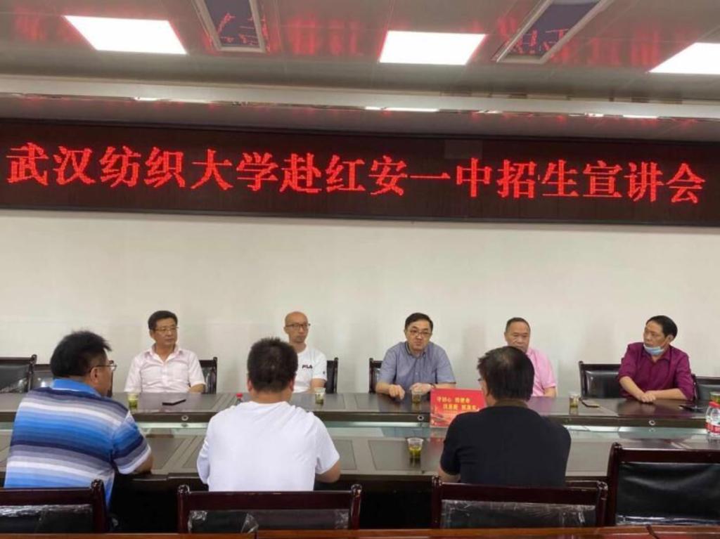 院长傅欣、党委书记陈良栋、副书记张鹏、视觉传达系主任黄龙飞一行四人赴红安一中开展招生宣传,红安一中校长陈良家率全体班子成员热情接待,并组织召开专题招生宣讲会,红安一中高三年级全体班主任参加了此次会议。