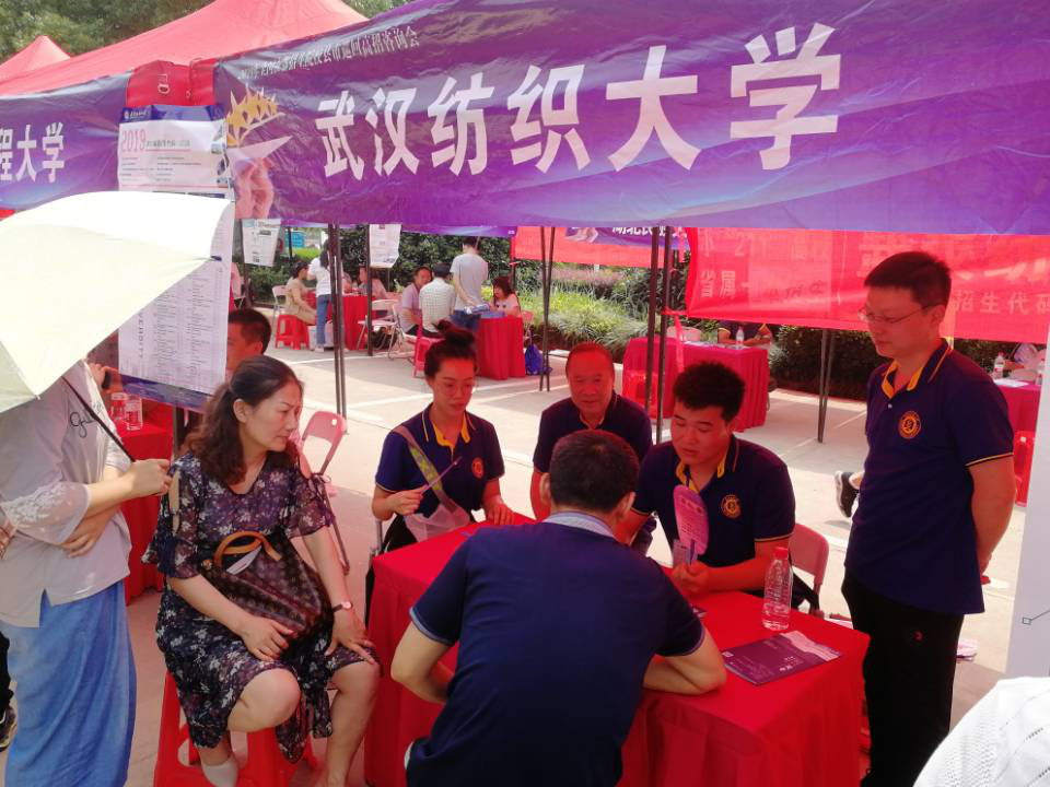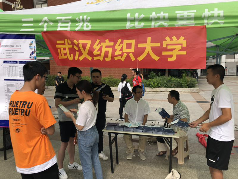 工作组历时六天,足迹遍及武汉、黄冈两市五县,克服了天气酷暑和暴雨时至的重重困难,圆满完成了今年的招生宣传任务。在招生咨询现场,学院招生宣传组分别从办学条件、学科建设、师资力量、毕业去向以及录取分数等问题与学生及家长面对面交流,接收咨询,招生宣传老师耐心、细心地解答现场提出的各类问题,并为考生及家长填报志愿提供科学合理的建议。在罗田一中,黄冈籍艺术学院2017级学生吕谋及家长参与了现场的招生咨询工作,他们对纺大的认同和现身说法起到了非常明显的宣传效应;在红安一中现场,学校的摊位被考生和家长围得水泄不通,红安是革命苏区,关于湖北地方专项的咨询相对集中,带去的所有资料也很快被抢光,工作组每位老师汗流浃背声音嘶哑依然耐心解答考生的疑问,现场气氛热烈,收到了预期的效果。