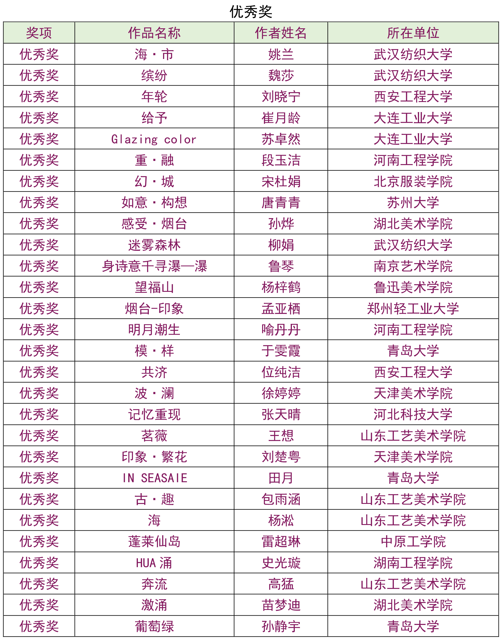 由中国纺织服装教育学会、中国纺织品进出口商会,烟台市政府主办,武汉纺织大学、山东工艺美术学院、山东省民营企业高质量发展烟台服务二队、烟台明远家用纺织品有限公司、福山区政府等共同承办的一场规模盛大的国际性赛事——“明远杯·国际家居纺织品创意设计大赛”已全部圆满结束,现将大赛大师工作坊的获奖名单公布如下: